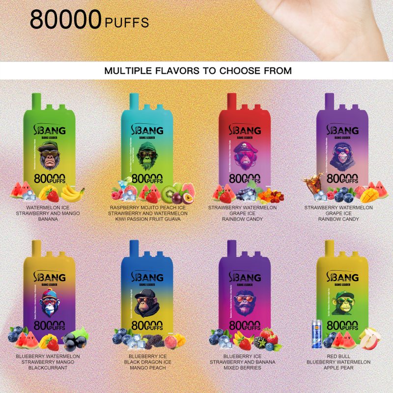BANG LEADER | 80K Puffs Vape 12-Flavors Three in one flavor Disposable E-Cigarettes (Ship from China)