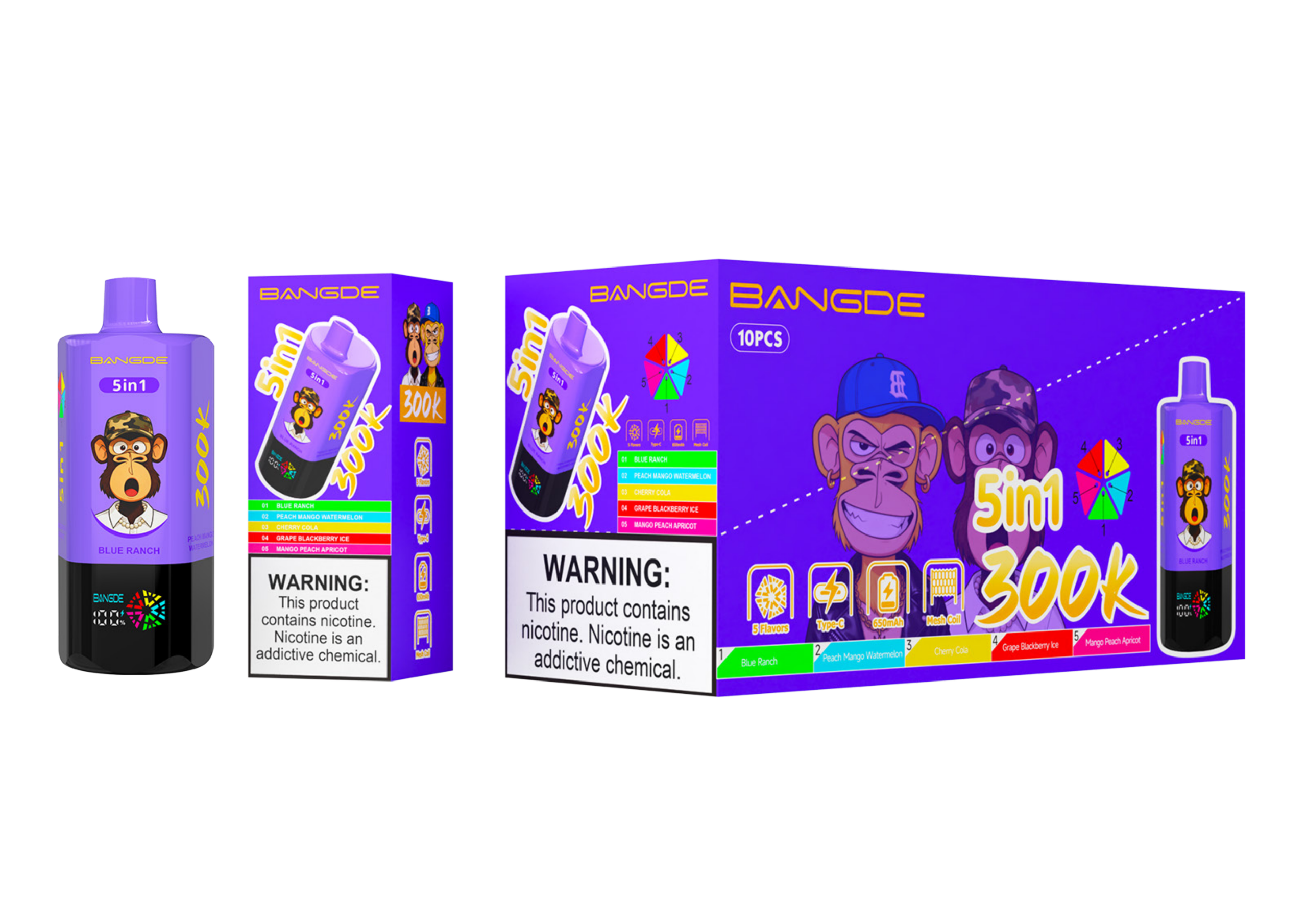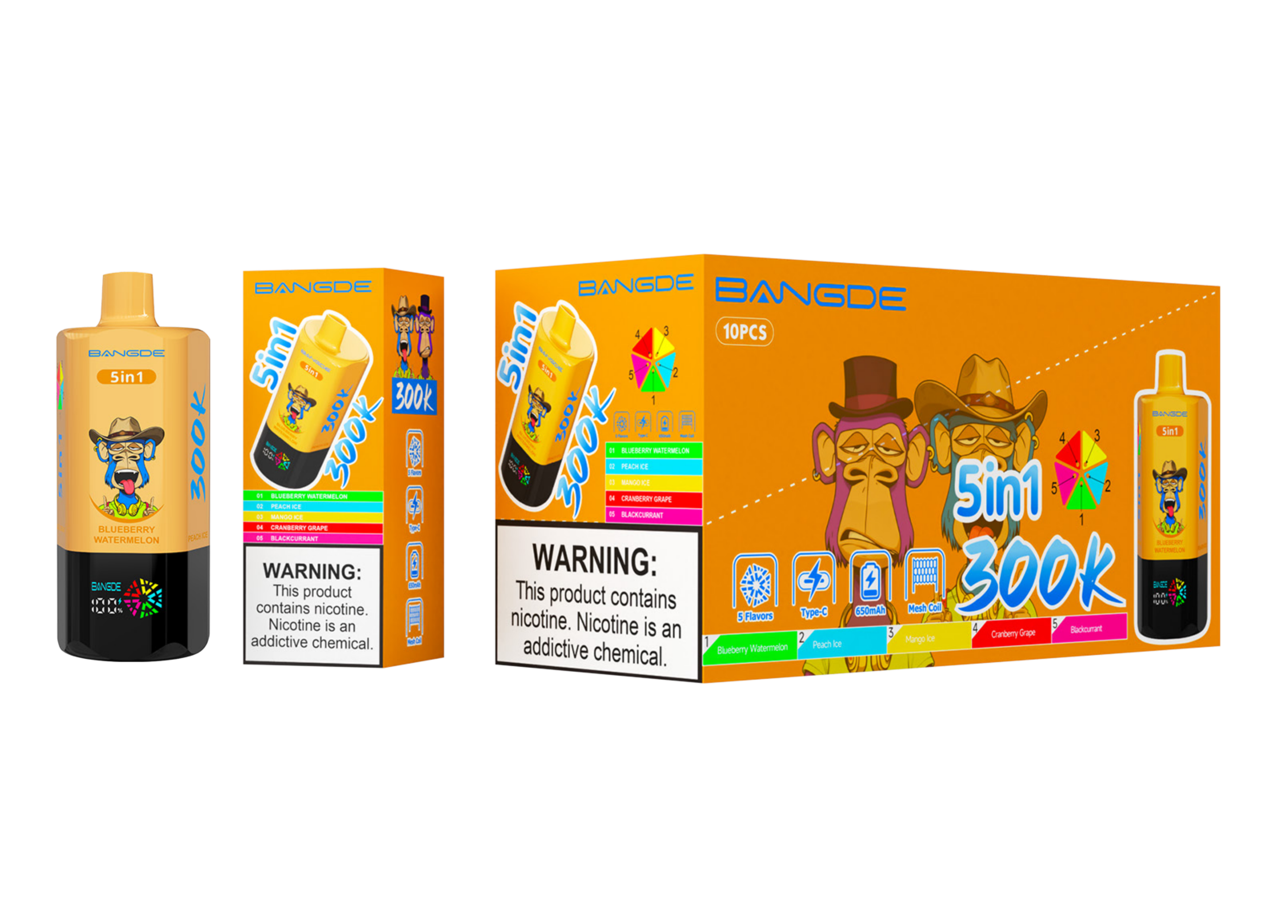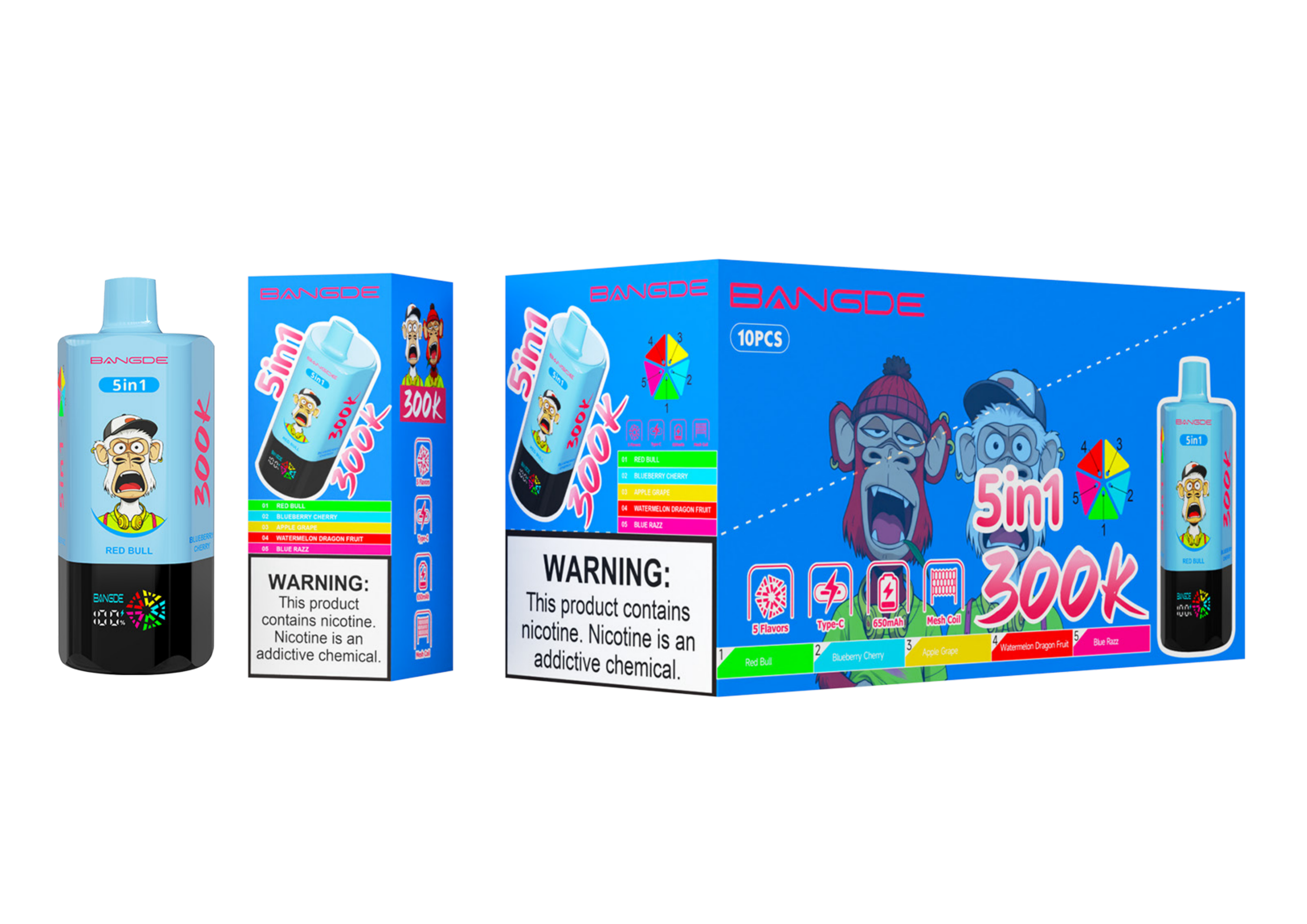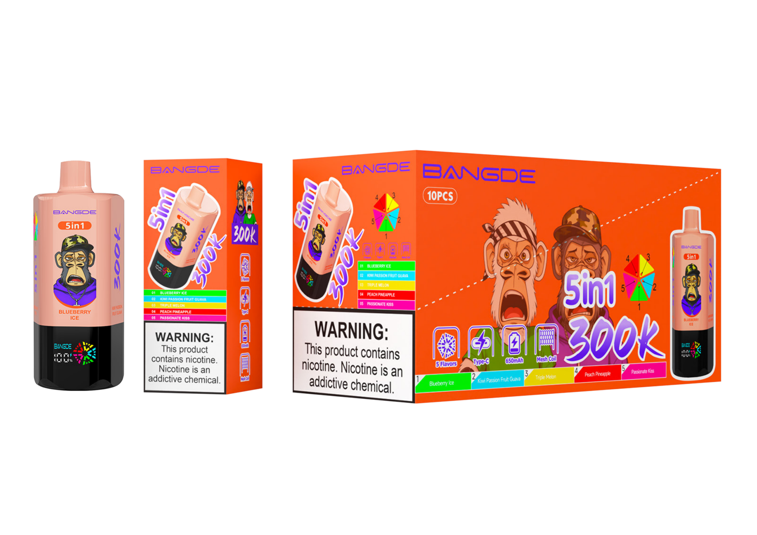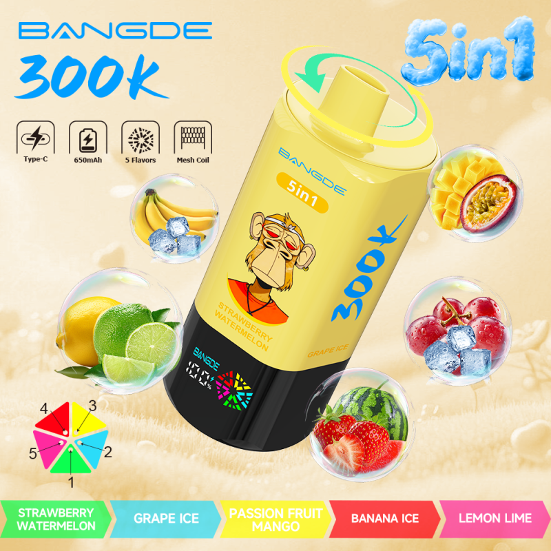 Product: BANG DE | 300K Puffs Vape 10-Flavors Five in one flavor Disposable E-Cigarettes (Ship from China)